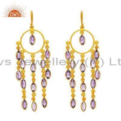 18K Yellow Gold Over Sterling Silver Amethyst Gemstone Chandelier Earrings