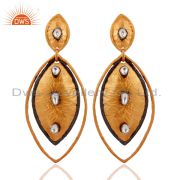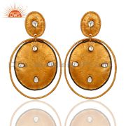 18K Yellow Gold Over Sterling Silver Crystal Quartz Polki Handmade Earrings