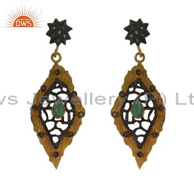 18K Yellow Gold Over Sterling Silver Emerald And Pave Diamond Dangle Earrings