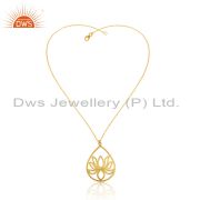 18K Yellow Gold Over Sterling Silver Hand Hammered Lotus Flower Dangle Earrings