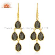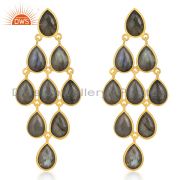 18K Yellow Gold Over Sterling Silver Labradorite Gemstone Chandelier Earrings