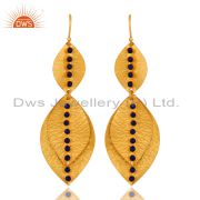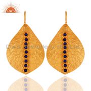 18K Yellow Gold Over Sterling Silver Lapis Lazuli Gemstone Designer Earrings
