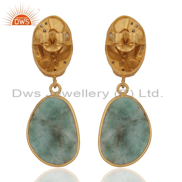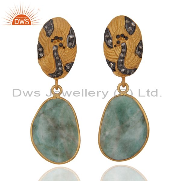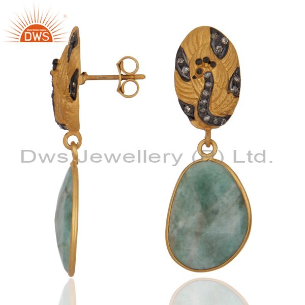18K Yellow Gold Over Sterling Silver Pave Diamond And Emerald Dangle Earrings