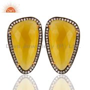 18K Yellow Gold Overlay Sterling Silver Earrings With Moonstone & Cubic Zirconia