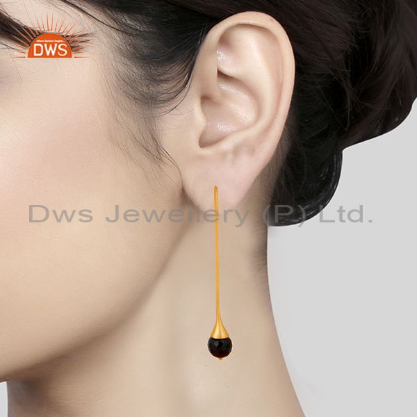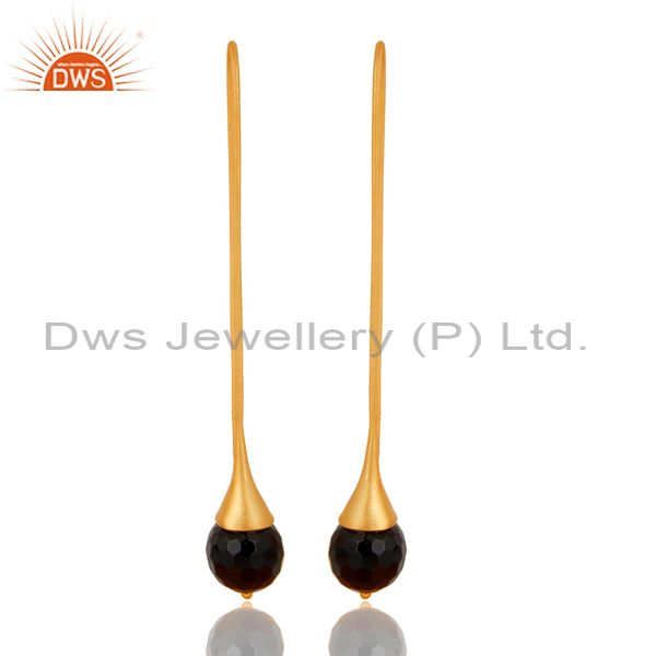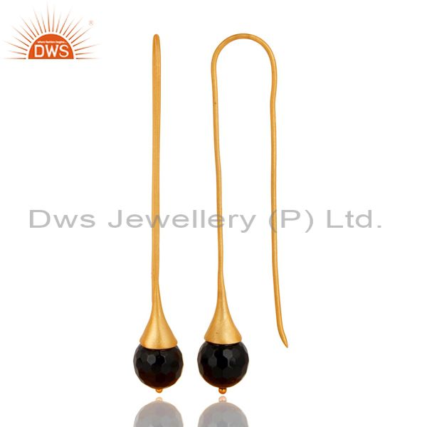 18K Yellow Gold Plated 925 Sterling Silver Black Onyx Gemstone Dangle Earrings