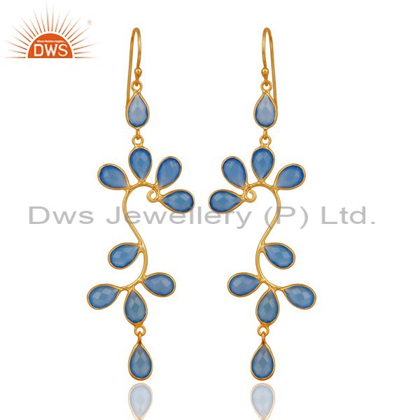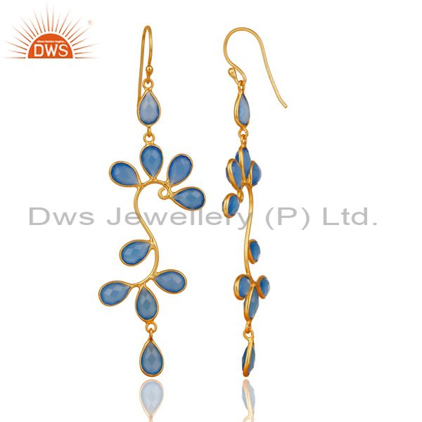 18K Yellow Gold Plated 925 Sterling Silver Blue Chalcedony Dangle Earrings