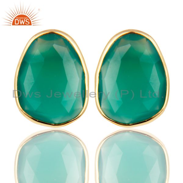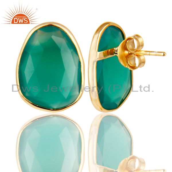 18K Yellow Gold Plated 925 Sterling Silver Checkered Green Onyx Studs Earrings