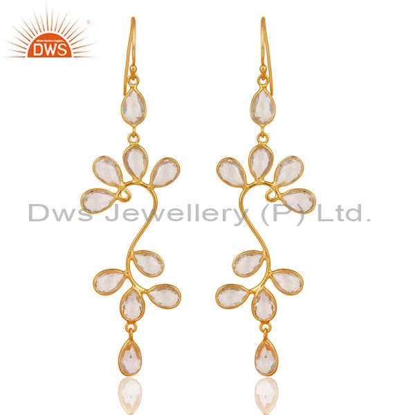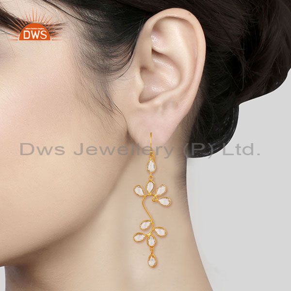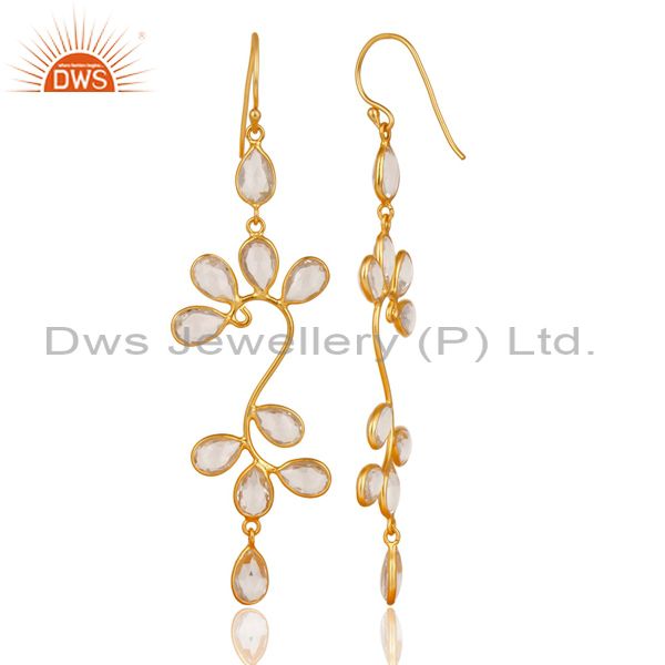 18K Yellow Gold Plated 925 Sterling Silver Crystal Quartz Dangle Earrings