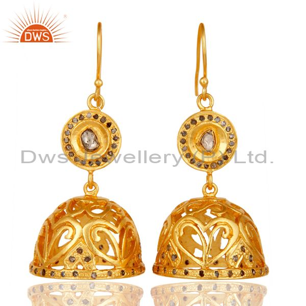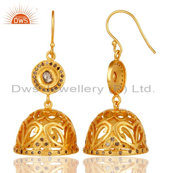 18k Yellow Gold Plated 925 Sterling Silver Diamond Cut Fancy Jhumka Earrings