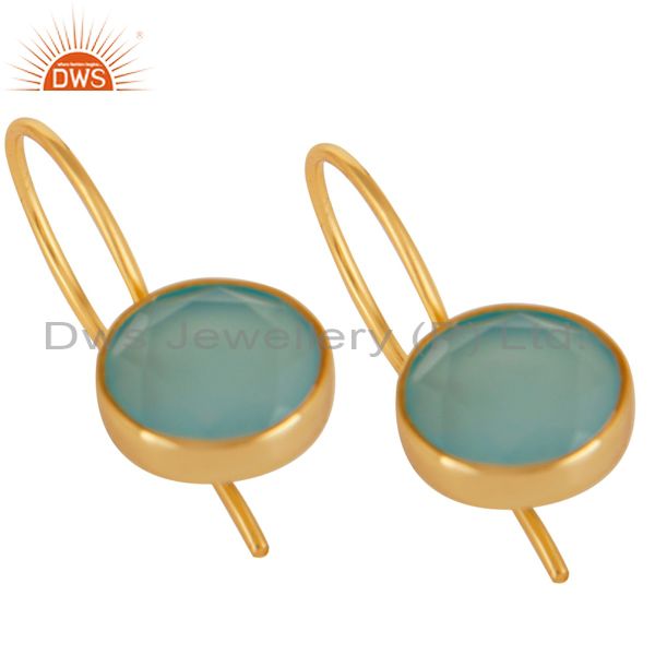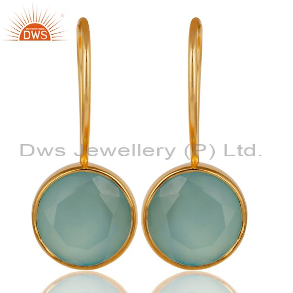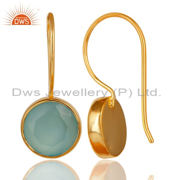 18K Yellow Gold Plated 925 Sterling Silver Dyed Chalcedony Drops Earrings
