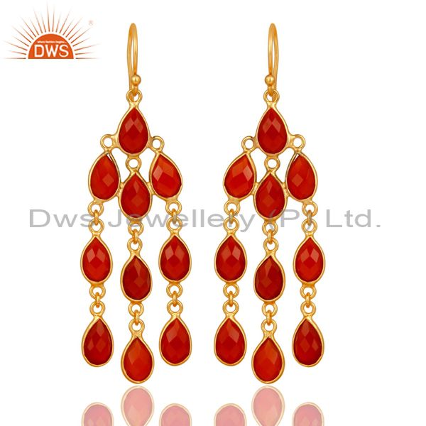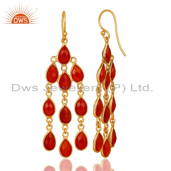 18K Yellow Gold Plated 925 Sterling Silver Handmade Red Onyx Chandelier Earrings