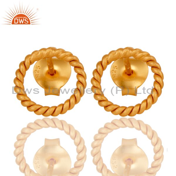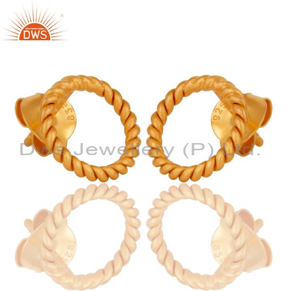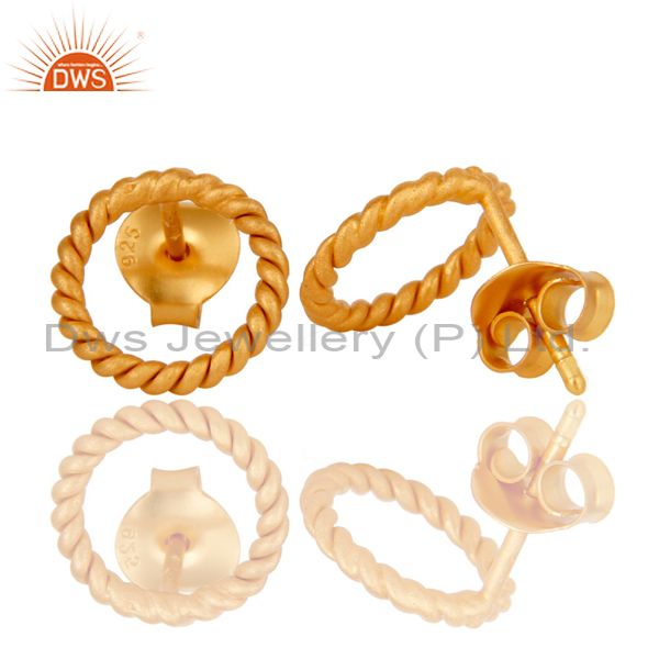 18K Yellow Gold Plated 925 Sterling Silver Handmade Twisted Wire Studs Earrings
