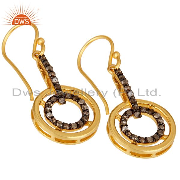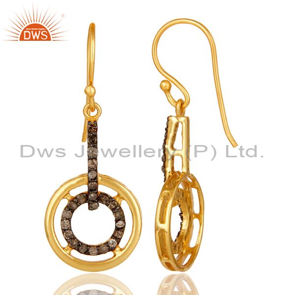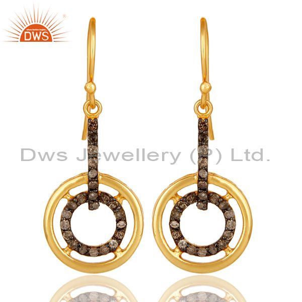 18K Yellow Gold Plated 925 Sterling Silver Round Pave Diamond Earrings Jewelry