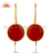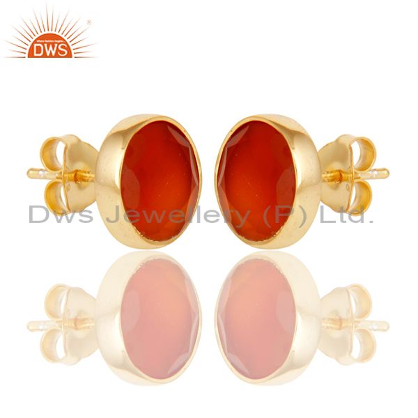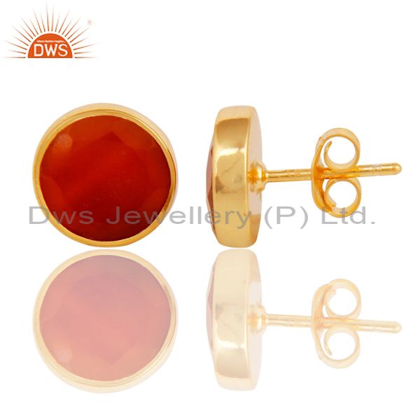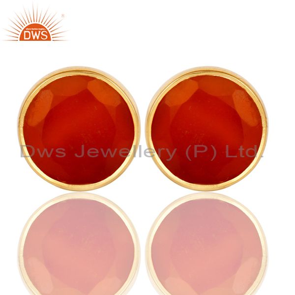 18K Yellow Gold Plated 925 Sterling Silver Round Red Onyx Gemstone Stud Earrings