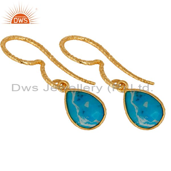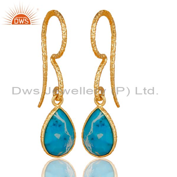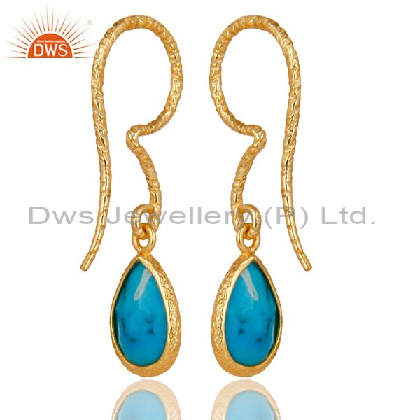 18K Yellow Gold Plated 925 Sterling Silver Turquoise Gemsone Drops Earrings