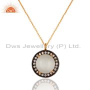 18K Yellow Gold Plated 925 Sterling Silver White Moonstone & Cz Hook Earrings