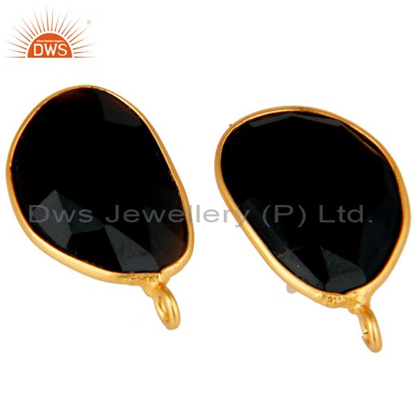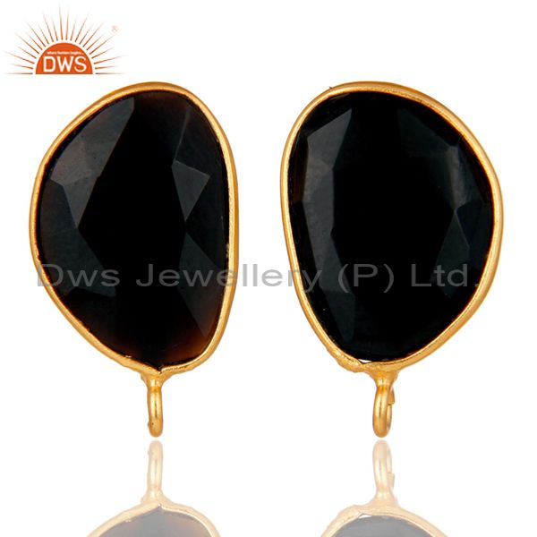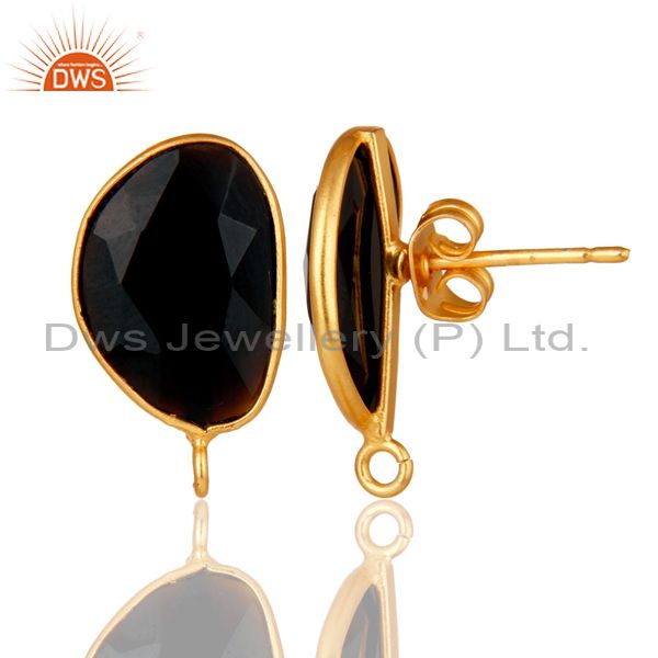 18K Yellow Gold Plated Black Onyx Stud Earring Jewelry Assesories Findings