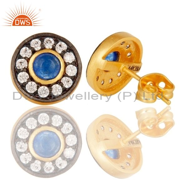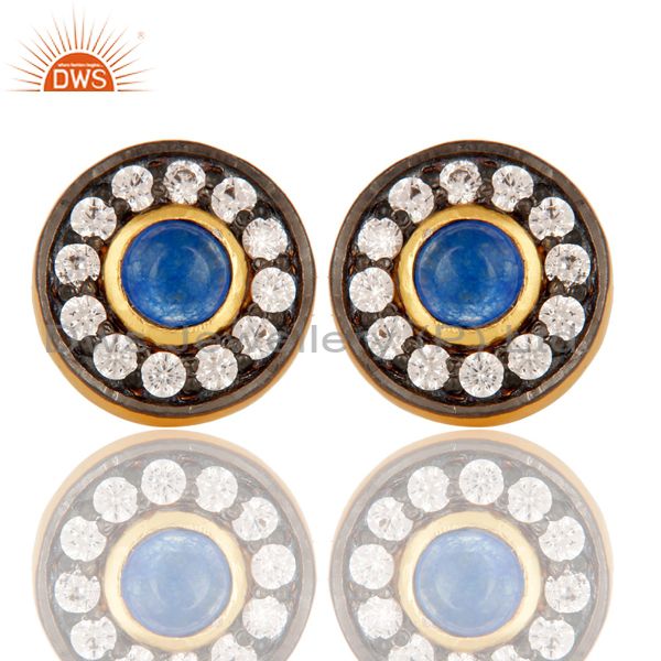 18K Yellow Gold Plated Blue Aventurine & White Zircon Halo Stud Brass Earrings