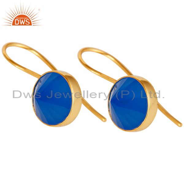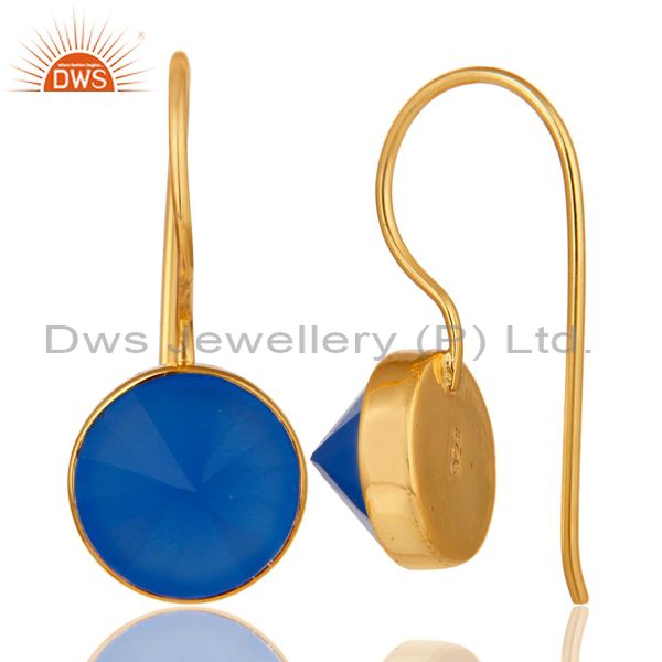 18K Yellow Gold Plated Blue Chalcedony Pyramid Earring Sterling Silver Earring