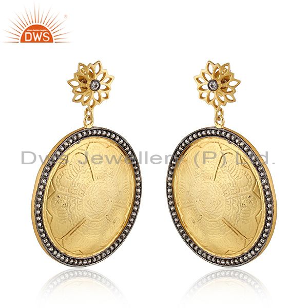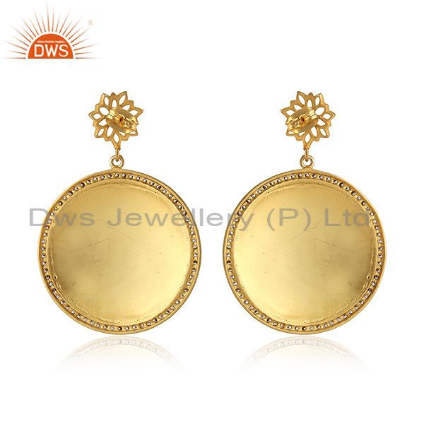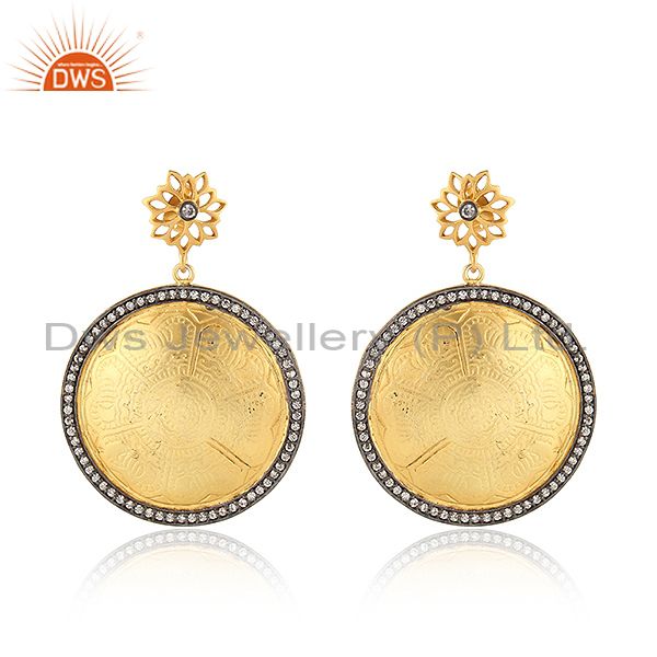 18K Yellow Gold Plated Brass Cubic Zirconia Disc Designer Dangle Earrings