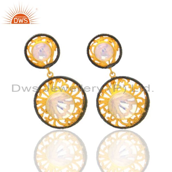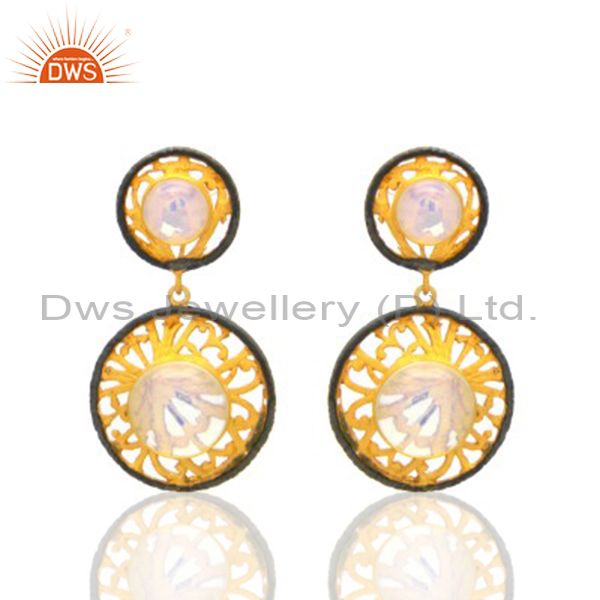 18K Yellow Gold Plated Brass Lapis Lazuli Gemstone Designer Dangle Earrings