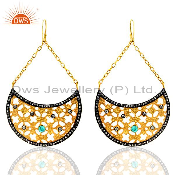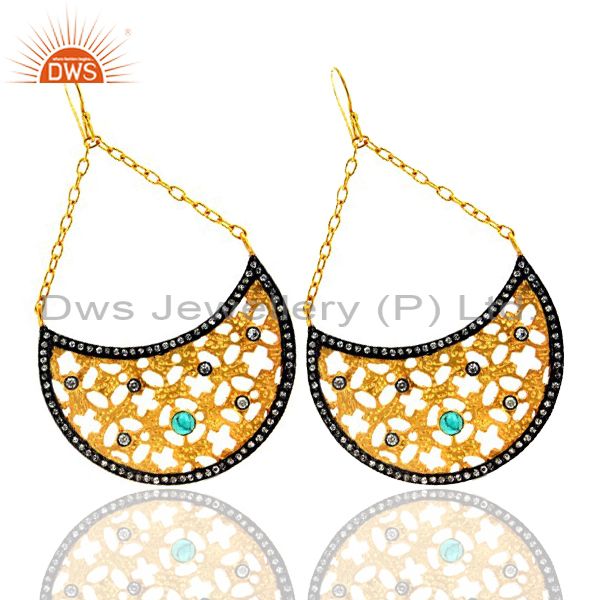 18K Yellow Gold Plated Brass Turquoise And Cubic Zirconia Designer Earrings