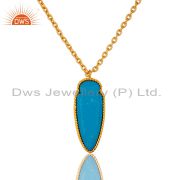 18K Yellow Gold Plated Brass Turquoise Gemstone Post Stud Earrings