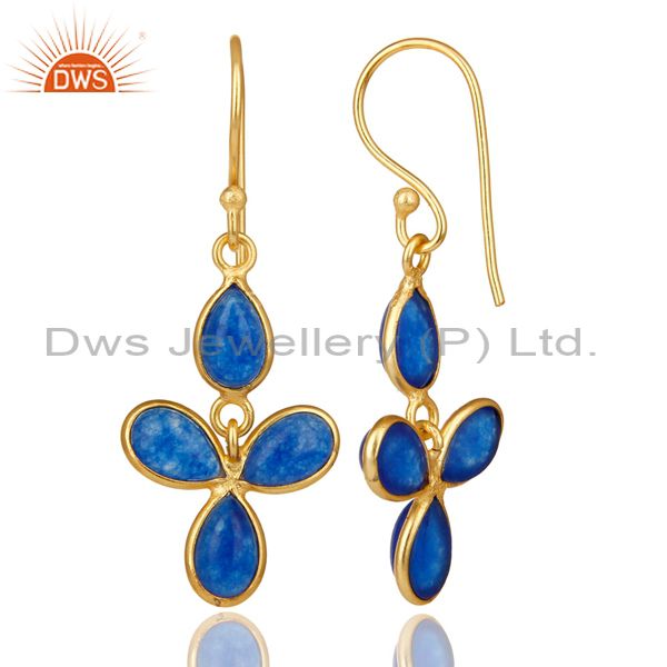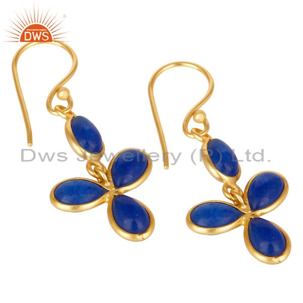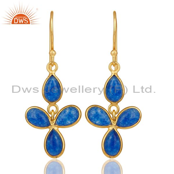 18K Yellow Gold Plated Handmade Blue Quartz Bezel Set Drops Brass Earrings