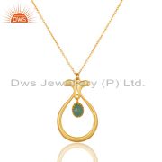 18K Yellow Gold Plated Handmade Temple Design Aqua Cultured Brass Drops Earrings