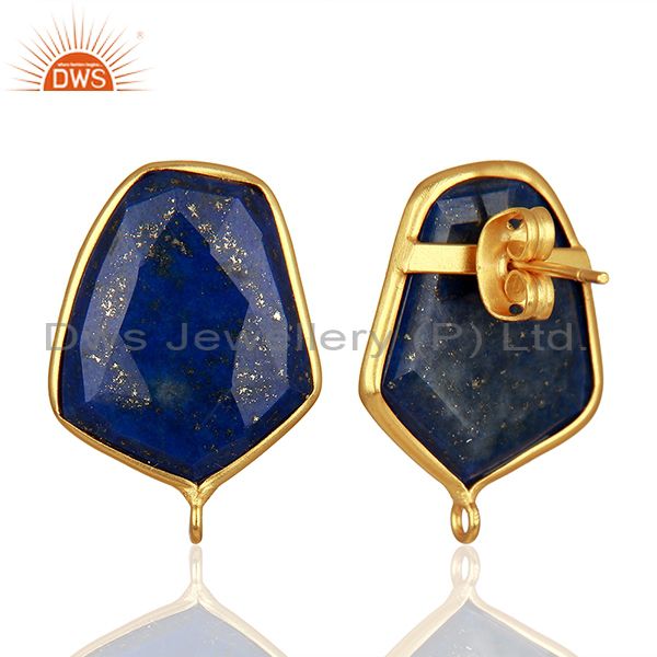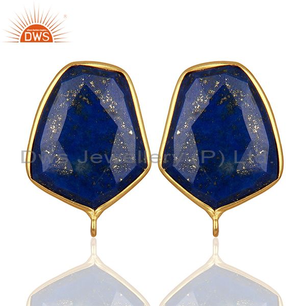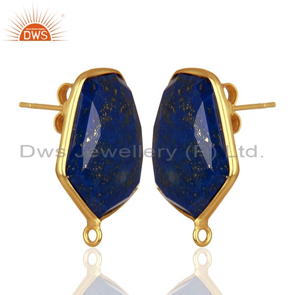 18K Yellow Gold Plated Lapis Lazuli Stud Earring Connector Assesories