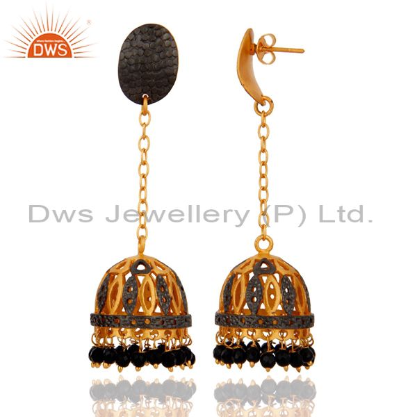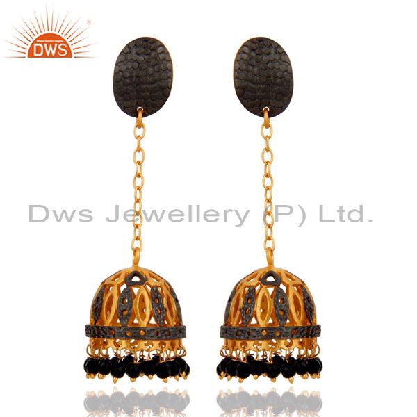 18K Yellow Gold Plated Plated Jewelry Black Onyx Gemstone Drop Dangle Earrings