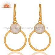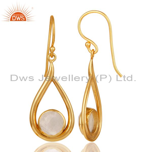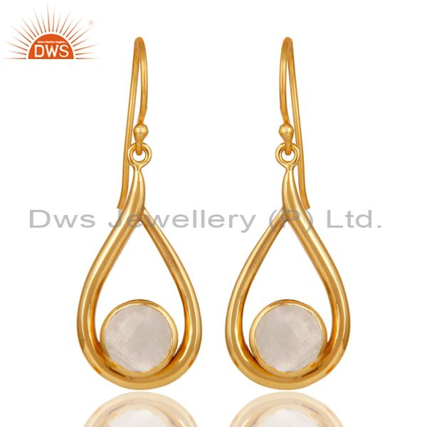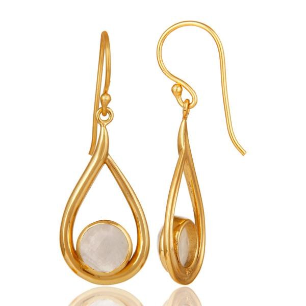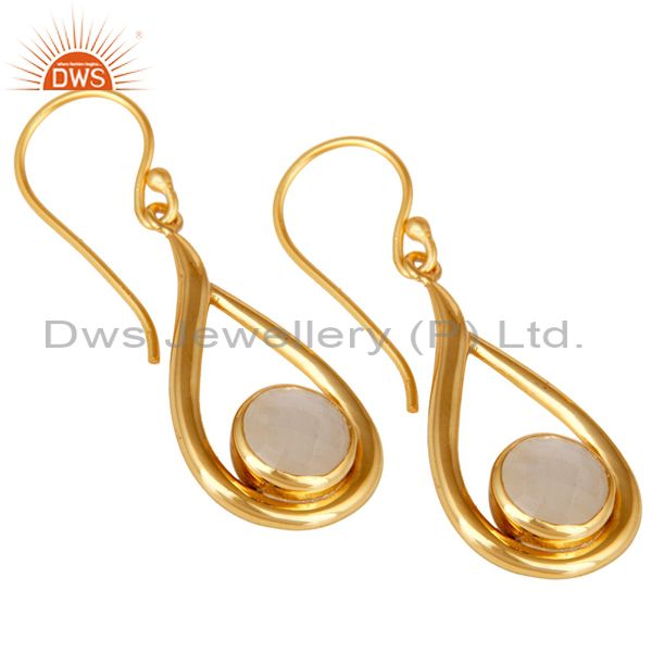 18K Yellow Gold Plated Rainbow Moonstone Gemstone Silver Dangle Drop Earring
