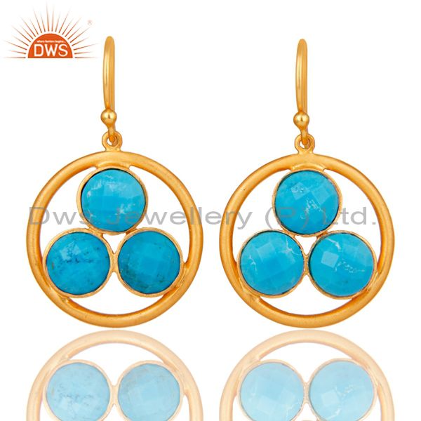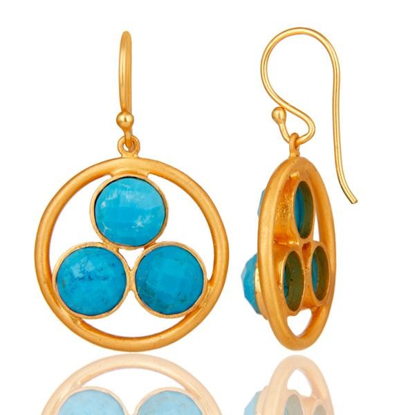 18k Yellow Gold Plated Solid Silver Turquoise Gemstone Circle Dangle Earrings