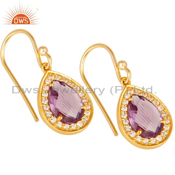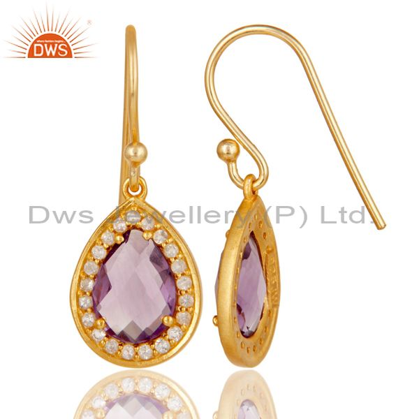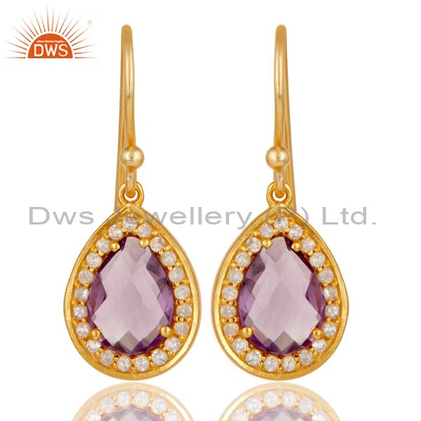 18K Yellow Gold Plated Sterling Silver Amethyst & White Topaz Drop Earrings