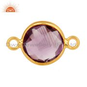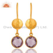 18K Yellow Gold Plated Sterling Silver Amethyst Bezel Set Dangle Hook Earrings