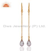 18K Yellow Gold Plated Sterling Silver Amethyst Bezel Set Drop Earrings