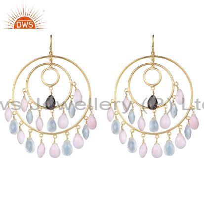 18K Yellow Gold Plated Sterling Silver Aqua Chalcedony Drop Chandelier Earrings