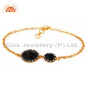 18K Yellow Gold Plated Sterling Silver Black Onyx And CZ Double Dangle Earrings