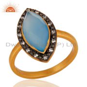 18K Yellow Gold Plated Sterling Silver Blue Chalcedony Dangle Earrings With Cz