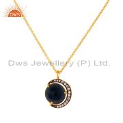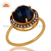 18K Yellow Gold Plated Sterling Silver Blue Corundum Stud Earrings With Cz