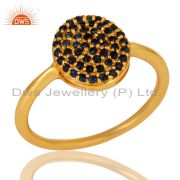 18k Yellow Gold Plated Sterling Silver Blue Sapphire Designer Earrings