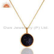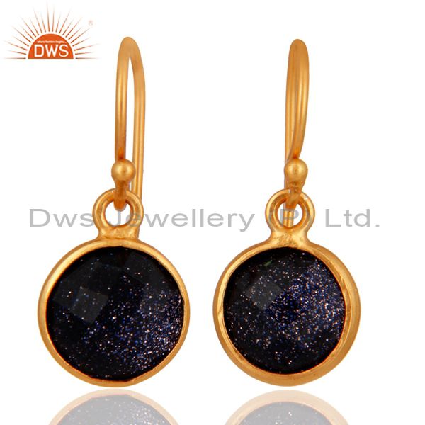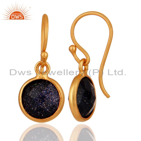18K Yellow Gold Plated Sterling Silver Blue Sun Sitara Bezel Set Drop Earrings