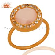 18K Yellow Gold Plated Sterling Silver Chalcedony And White Topaz Halo Earrings