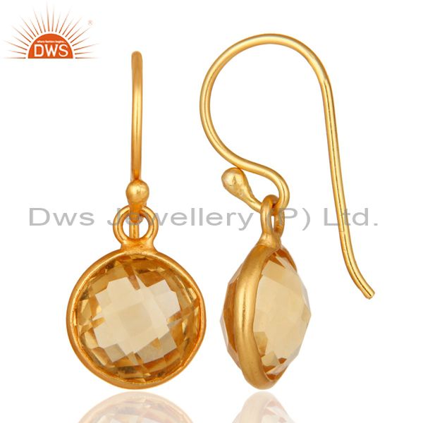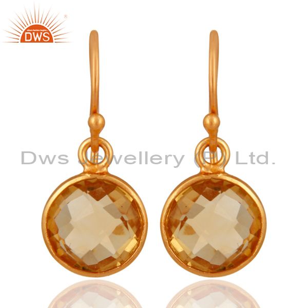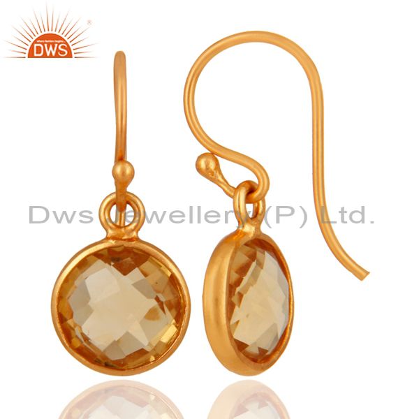 18K Yellow Gold Plated Sterling Silver Citrine Gemstone Bezel Set Drop Earrings