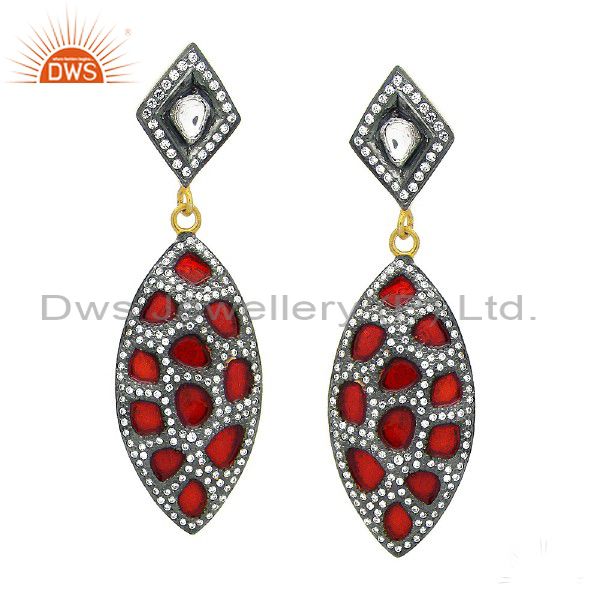 18K Yellow Gold Plated Sterling Silver Cubic Zirconia And Red Enamel Earrings