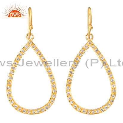 18K Yellow Gold Plated Sterling Silver Cubic Zirconia Dangle Earrings