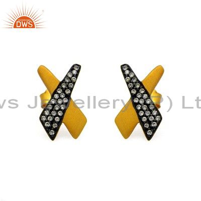 18K Yellow Gold Plated Sterling Silver Cubic Zirconia Designer Stud Earrings