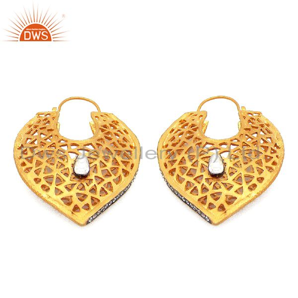 18K Yellow Gold Plated Sterling Silver Cz Polki Filigree Designer Dangle Earring