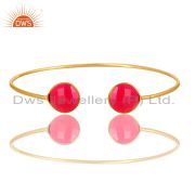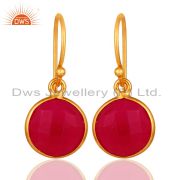 18K Yellow Gold Plated Sterling Silver Dyed Pink Chalcedony Gemstone Stud Earrin