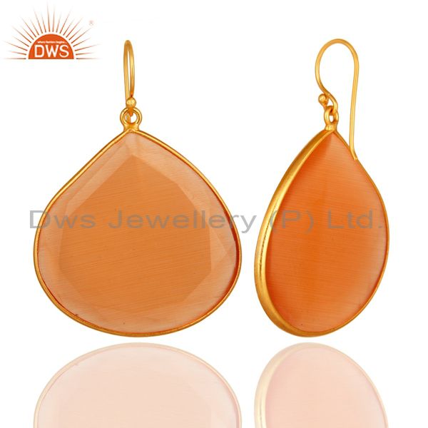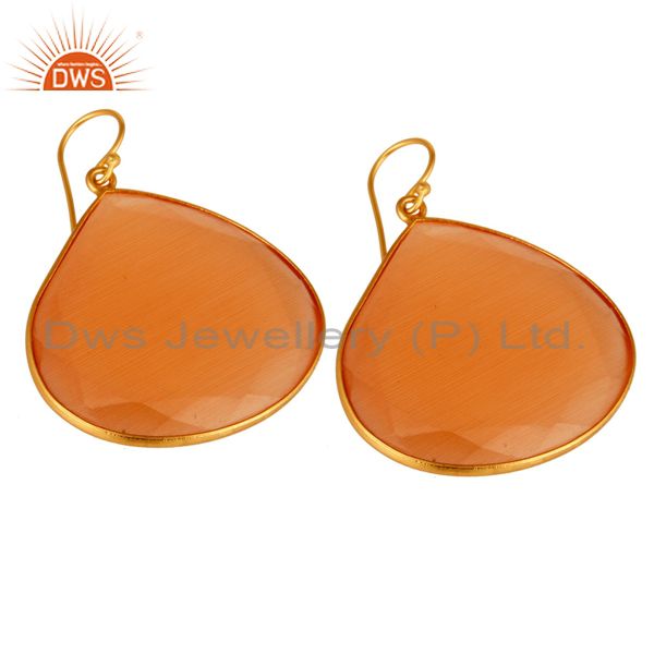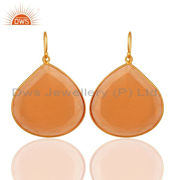 18K Yellow Gold Plated Sterling Silver Faceted Peach Moonstone Teardrop Earrings